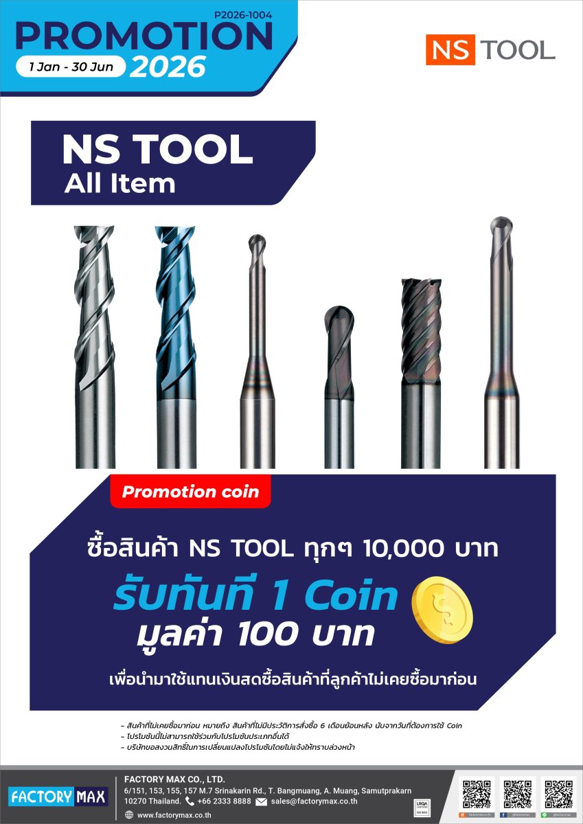 ซื้อสินค้า NS TOOL ในราคาส่วนลดปกติ ครบ 10,000 บาท รับ 1 Coin มูลค่า 100 บาท เพื่อใช้แลกซื้อสินค้าที่ลูกค้าไม่เคยซื้อมาก่อน