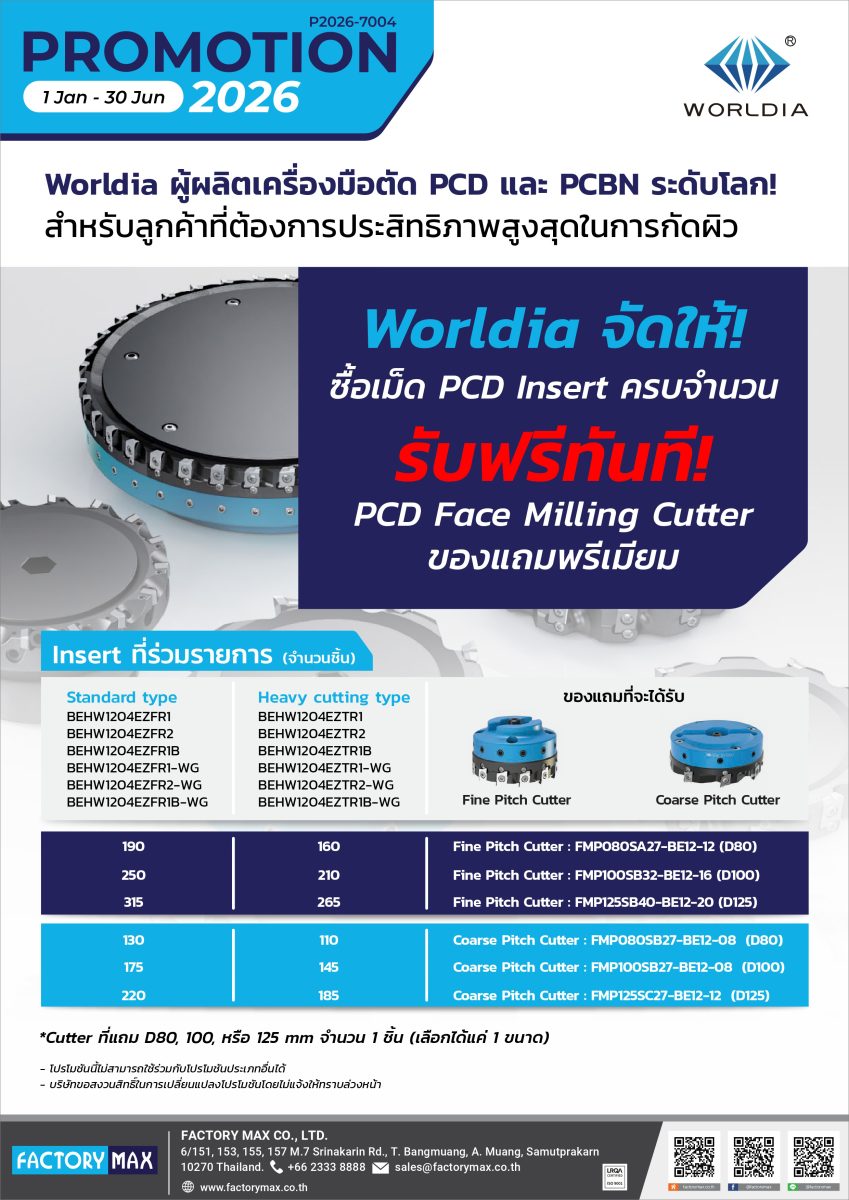 Promotion Worldia ซื้อเม็ด PCD Insert รับฟรีทันที PCD Face Milling Cutter ของแถมพรีเมียม