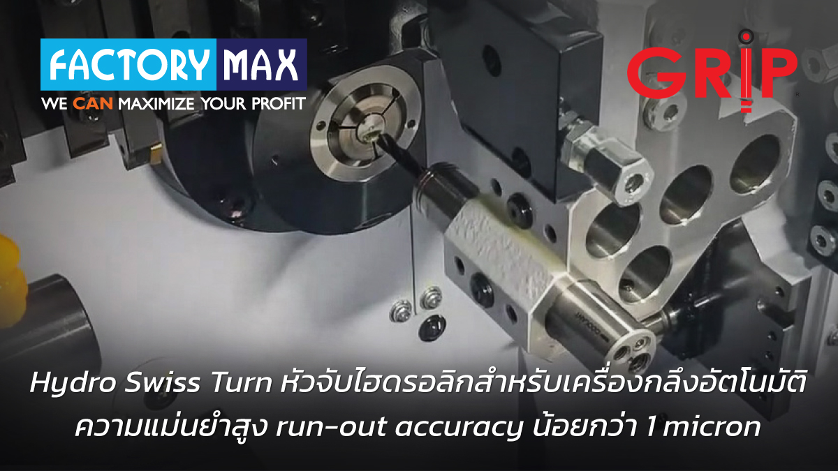 Hydro-Swiss Turn คือ หัวจับแบบไฮดรอลิก นวัตกรรมใหม่สำหรับเครื่องกลึง CNC Automatic Lathes หรือ Bar Feeder Machines จากผู้ผลิต GRIP ประเทศเกาหลี หัวจับแบบไฮดรอลิกคุณภาพสูงรุ่นนี้รองรับการเจาะ และคว้านรูที่มีความแม่นยำสูงบนเครื่องกลึงอัตโนมัติ สามารถถอดเปลี่ยนเครื่องมือได้ง่าย และรวดเร็วแม้ในเครื่องจักรที่มีพื้นที่จำกัด โดยใช้ประแจเพียงตัวเดียว อีกทั้งให้ความแม่นยำเพียง 1 ไมครอน ที่ความยาว 3D